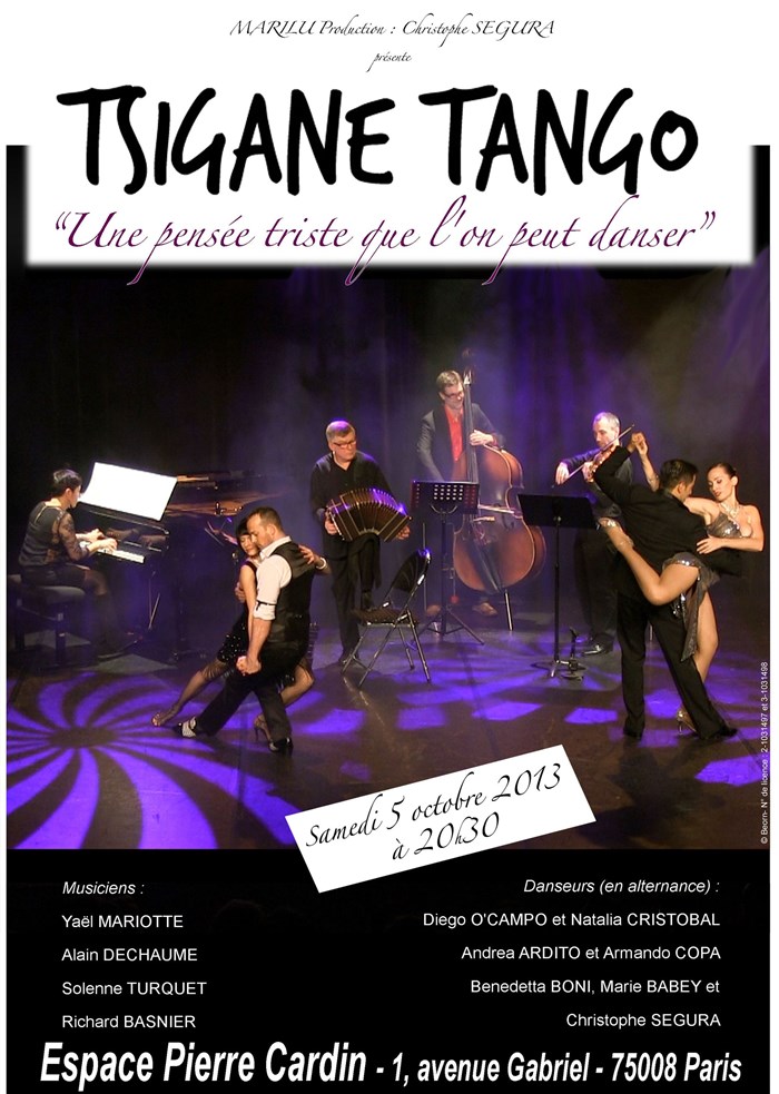 Le groupe Tsigane-Tango célèbre le renouveau du Tango, créant un lien entre le tango traditionnel et le " nuevo tango " d'Astor Piazzolla à qui il rend hommage.