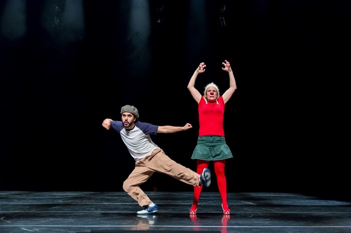Au rythme d'une batterie, une clown bavarde s'entiche d'un danseur hip-hop silencieux. Humour, danse et carambolage garantis !