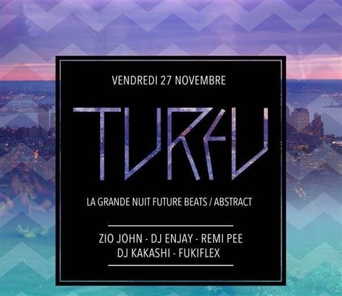 Êtes-vous prêts pour l'expérience Turfu un voyage dans le futur et quelques détours dans l'espace-temps des différentes époques musicales par une équipe de Dj /producteurs parisiens triés sur le volet. Ils vous convient à ce concept exclusif ! Une nuit consacrée au genre Future beats et autres classiques Hiphop, RnB et house.