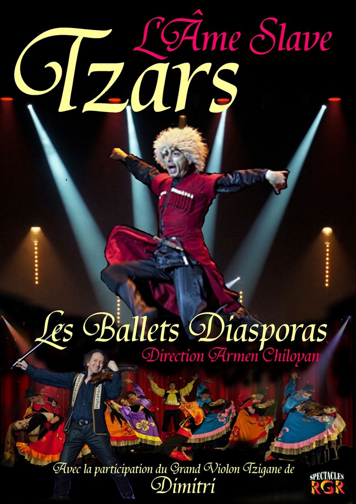 Au cours du spectacle Tzars les artistes des Ballets Diasporas franchiront les frontières de Russie, d'Arménie, de Hongrie, de Roumanie, de Moldavie et du Caucase dans un esprit d'échange de cultures. Chacun des pays de l'Est visité vous dévoilera son Âme.