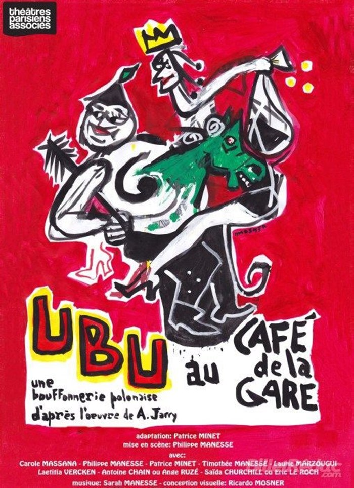 Le Père Ubu débarque au Café de la Gare avec la Mère Ubu, des palotins, des chansons, du rire et des décors à roulettes. Une bouffonnerie polonaise.