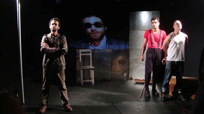 Dans l'éclatement de la lumière, le rythme de la musique, on devine trois jeunes hommes.