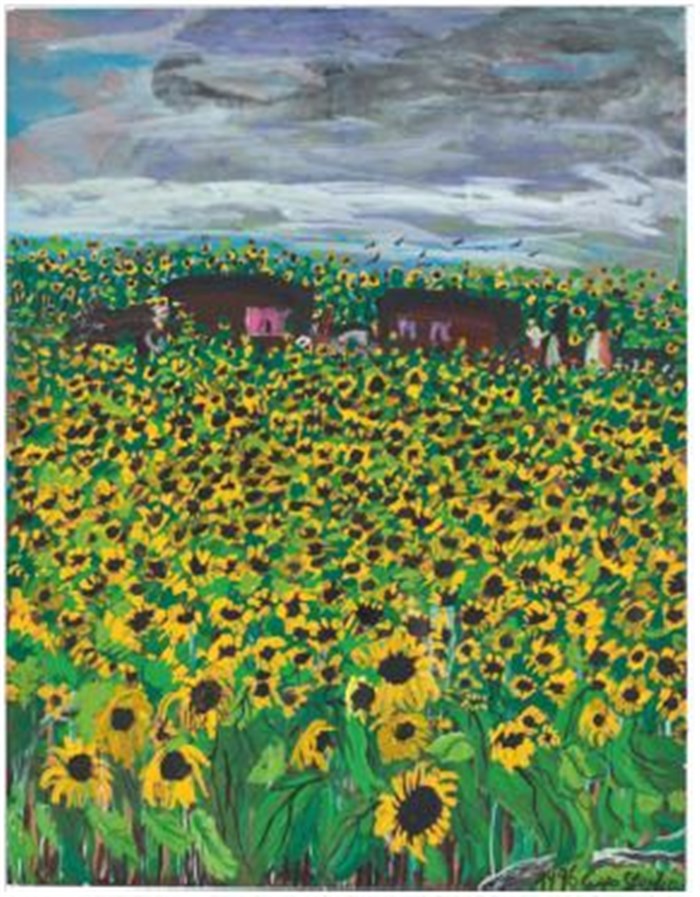 Ceija Stojka, née en 1933 en Autriche dans une famille rom, rescapée des camps à 12 ans, analphabète, autodidacte, poète à 40 ans, est devenue peintre à 60 ans (plus d'un millier d'oeuvres). Elle a aussi été, jusqu'à sa mort en 2013, la porte-parole de la lutte des Roms en faveur de leur dignité.