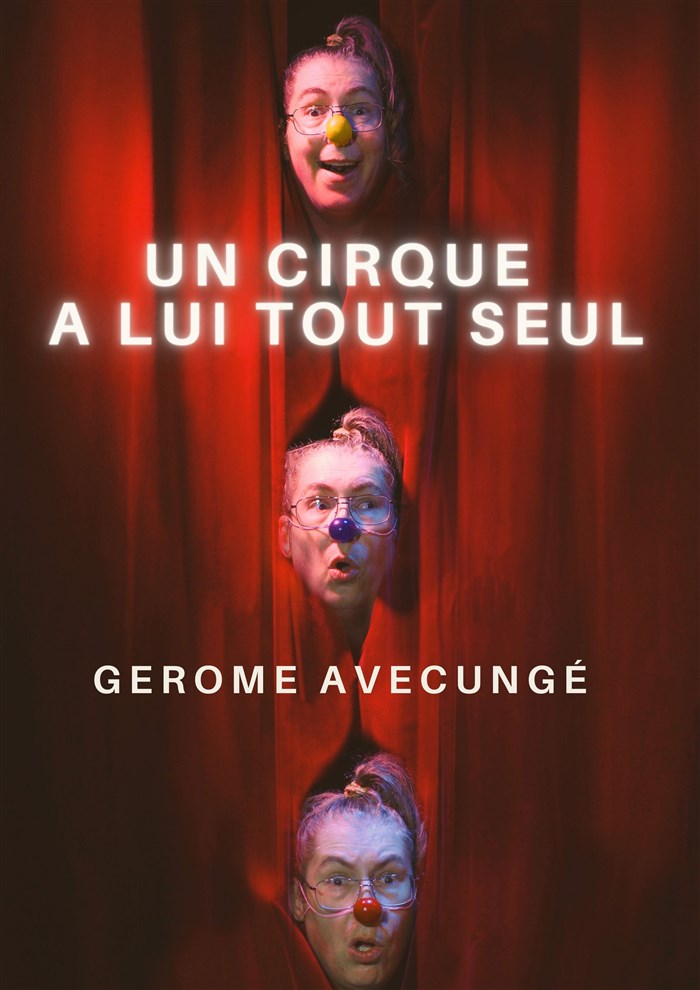 Gérôme Avecungé est le patron du cirque. Cet artiste aux multiples facettes allie jonglerie, magie et troubadourerie dans un seul et même spectacle. Il voulait créer un cirque sans animaux, alors il a regroupé plusieurs clowns afin de vous présenter un spectacle exceptionnel et unique en son genre."