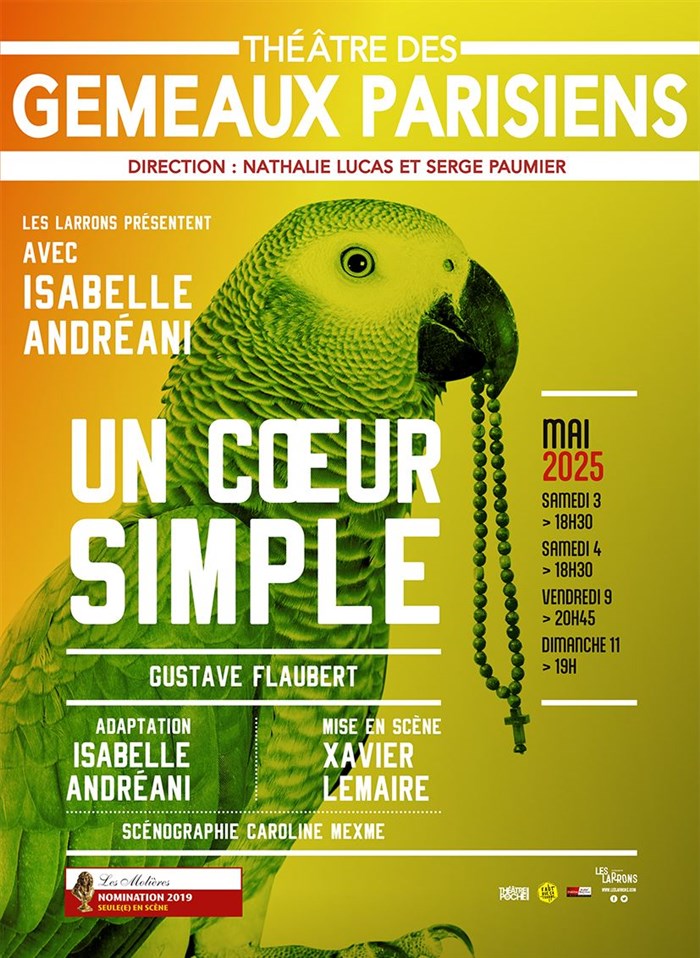 Un spectacle de très grande qualité, permettant de découvrir la nouvelle de Flaubert, magistralement interprétée par Isabelle Andréani. Le jeu de la comédienne est exceptionnel et sert le texte avec coeur et simplicité. Une réussite totale.