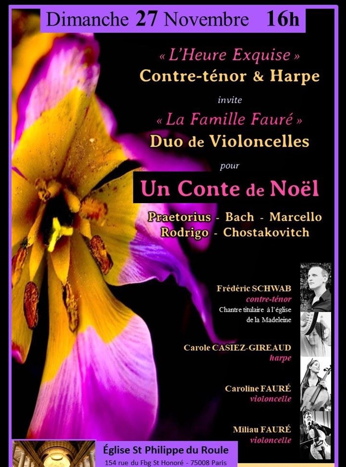 L’événement Un Conte de Noël : Contre-ténor, Harpe & 2 Violoncelles de type Musique classique, organisé ici :