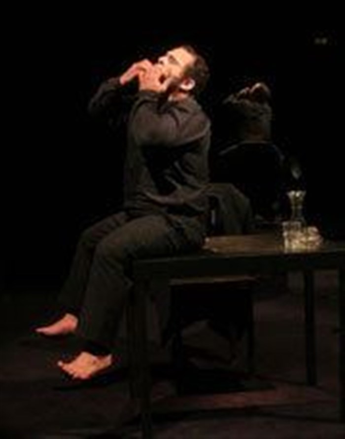 Le comédien acrobate et zoomorphe Cyril Casmèze, ancien des cirques Archaos et Plume, incarne ce singe devenu homme avec un naturel déconcertant.