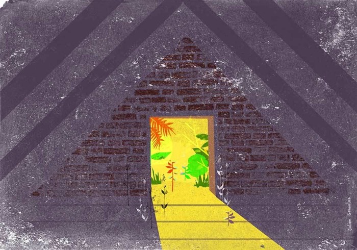 En attendant cet ailleurs, André grandit là avec sa maman rêveuse, et ensemble ils construisent des châteaux de carton dans le salon. Jusqu'au jour où André tombera dans le grenier sur une drôle de découverte.