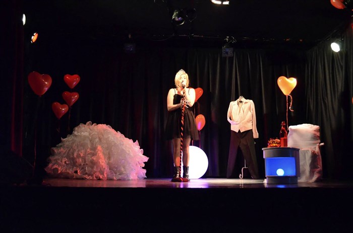 Spectacle de chant et théâtre retraçant la vie sentimentale d'une fille, de nos jours. Accompagnement piano, guitare et percussions.
