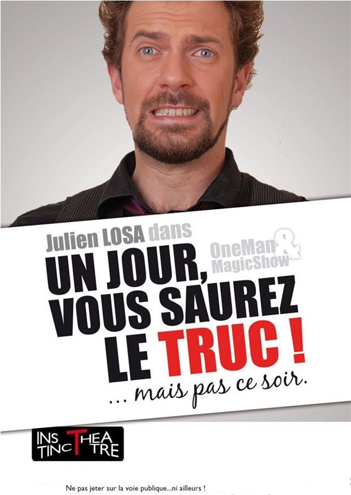 Très bon spectacle ! Avec un humour piquant, l'artiste nous fait découvrir ce qu'il se passe dans la tête des magiciens. Pourquoi ont-il commencé la magie ? Comment gèrent-ils les questions récurrentes (et lourdes) des spectateurs ? Comment s'y prennent les vendeurs de trucs ? Tout ça est abordé avec beaucoup d'humour pour nous faire découvrir une mordante vérité... Et pourtant, quel beau parcours que celui d'un magicien ! Une sorte de psychanalyse dégantée avec quelques moments intenses et touchants au milieu des rires...