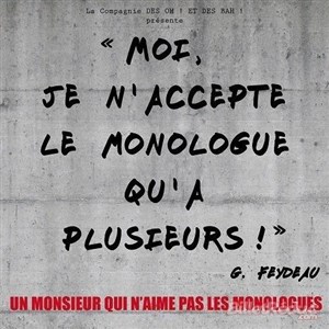 "Moi, je n'accepte le monologue qu'à plusieurs qu'à plusieurs". De G. Feydeau on connaît ses comédies emblématiques, beaucoup moins ses monologues.