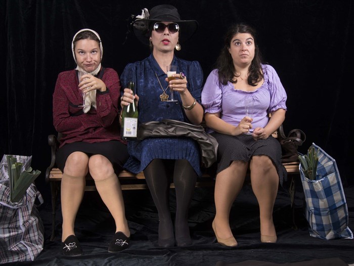 Un banc. Une veuve haineuse du sexe masculin. Une jeune femme en détresse qui dissimule dans son cabas... la tête... de son mari. Une vieille fille qui pourrait bien être la solution au problème.