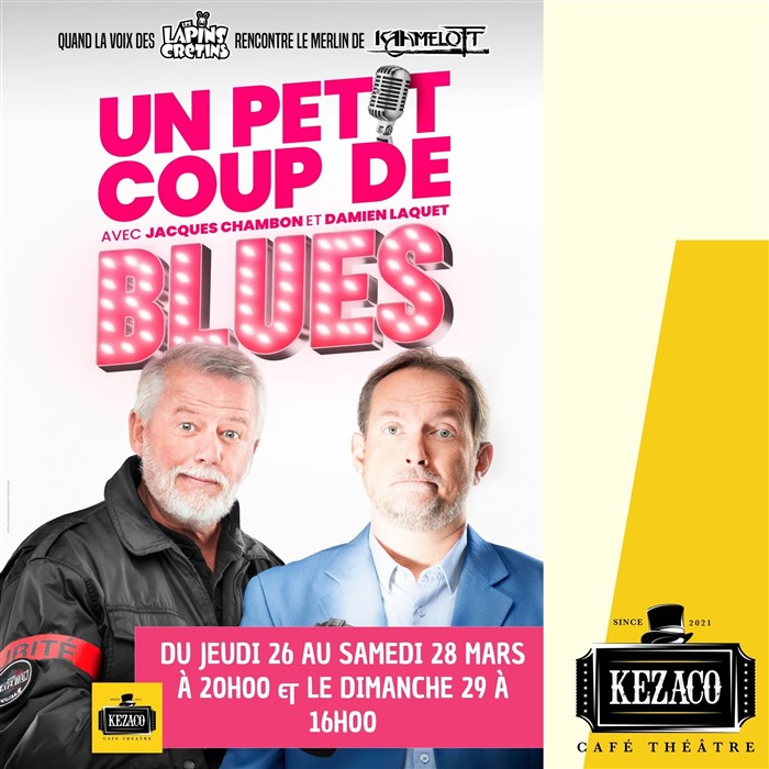 Découvre Un p'tit coup de blues, qui fait partie de notre sélection d’événements de type Comédie et qui se tient ici : Kezaco Café Théâtre -