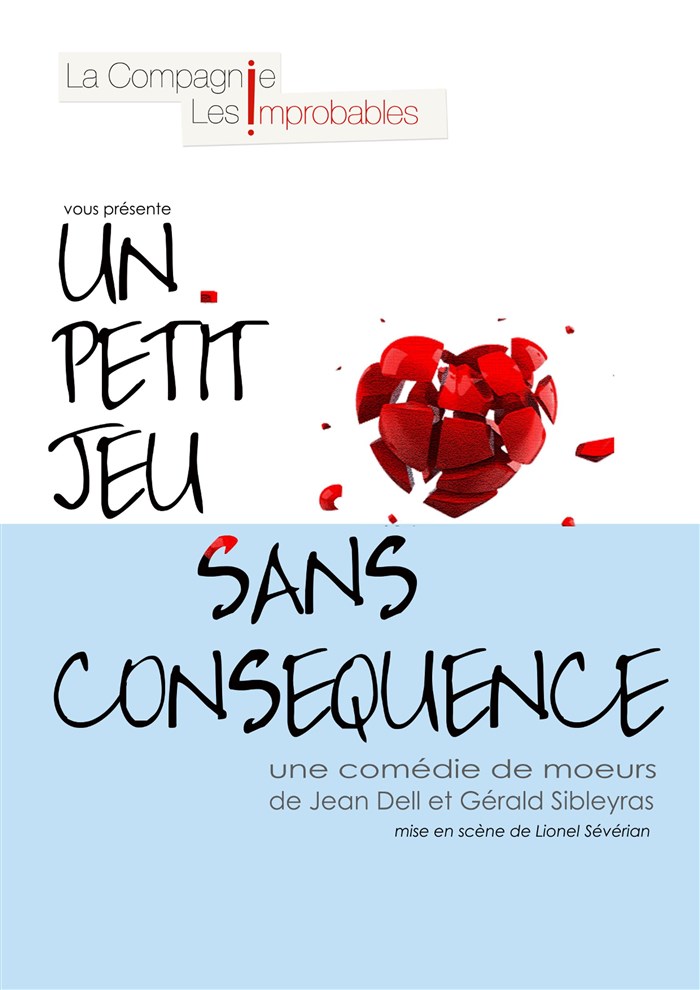Un grand bravo à la compagnie les improbables pour leur interprétation de "un petit jeu sans conséquence"!!! Un pièce actuelle qui touche au coeur et qui interroge, des éclats de rire qui fusent, des personnages justes et incroyablement bien interprétés! Foncez voir cette pièce vous passerez une belle soirée dont vous vous souviendrez!! Bravo à tous!!