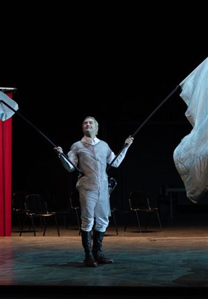 Mais est-ce de la désobéissance ou de l'inattention ? Et quel est donc ce héros, qui semble fuir ses vertus classiques, et que la mort effraie ? Peut-être, comme le suggère le poète Stéphane Bouquet, adaptant pour Robert Cantarella la pièce de Kleist : un homme qui ne parvient pas, ou n'a pas le désir, d'être à la hauteur de son rôle.