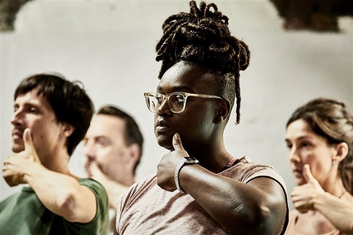 Un sacre est l'évocation de ces secrets portés par un collectif d'acteurs. À la manière des pleureuses antiques, les interprètes, dépositaires d'un chagrin qui ne leur appartient pas, tentent de faire de la scène un lieu de réparation. Dans ce corps-à-corps avec la parole sauvée du néant, ils s'appliquent à raccommoder le réel grâce au pouvoir de la fiction.