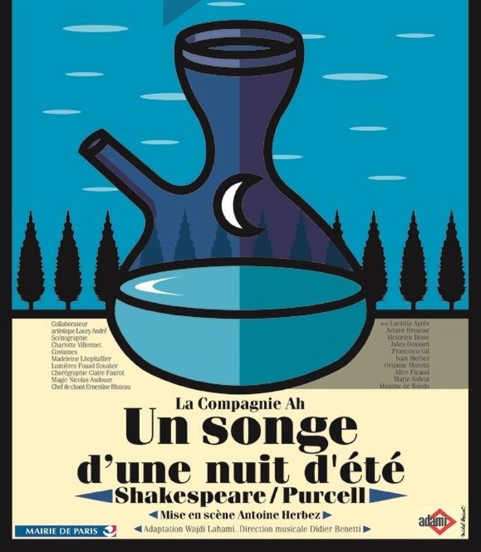 Ca n'est pas le Songe de Shakespeare seul qui nous est donné à voir ; c'est le Songe de Shakespeare et des extraits du semi-opéra de Purcell inspiré de Shakespeare, The Fairy Queen, qui nous sont donnés à entendre. Il fallait donc des comédiens qui fussent à la fois musiciens et chanteurs et inversement. Antoine Herbez les a trouvés (comment ? ..où ? ... des artistes complets existent donc en France?) et les met en scène remarquablement à partir d'une adaptation de Wajdi Lahami qui concentre l'argument sur le chassé- croisé des deux jeunes couples d''athéniens ramenant le spectacle à une durée idéale d'une heure trente. La scénographie de Charlotte Villermet est astucieuse, les costumes de Madeleine Lhopitallier admirables et il faut saluer la direction musicale très précise de Didier Benetti, la beauté des voix et la qualité des instrumentistes. Parmi tous ces jeunes talents réunis sur le plateau, une mention spéciale à Arianne Brousse qui dans le rôle assez central d'Héléna apporte toute l'énergie, la drôlerie et le rythme propres à ancrer résolument, avec ses camarades de jeu, la pièce dans le registre joyeux de la comédie.