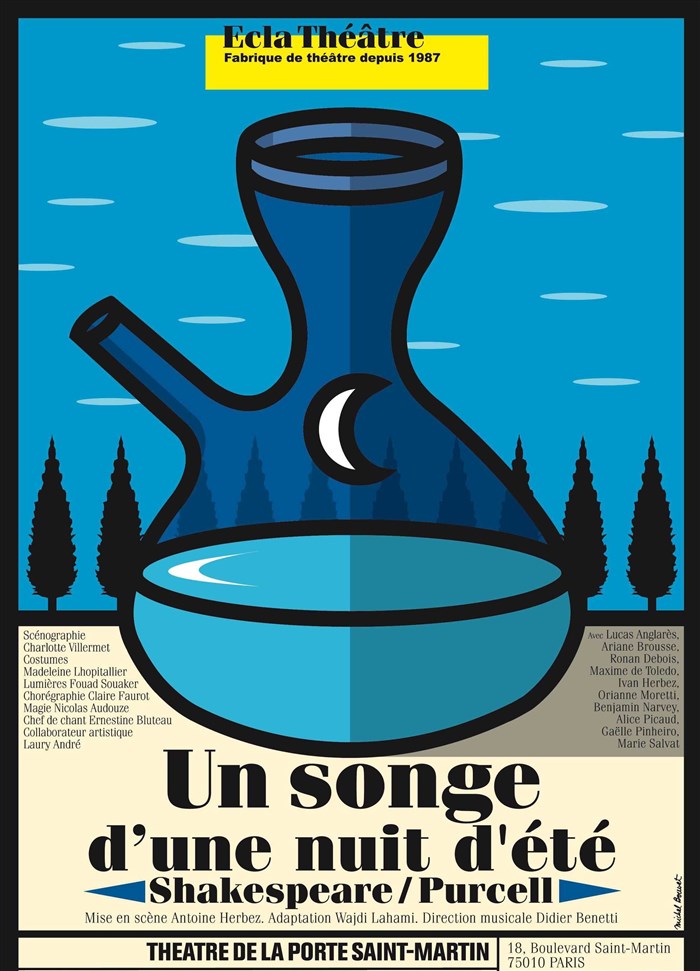 Ca n'est pas le Songe de Shakespeare seul qui nous est donné à voir ; c'est le Songe de Shakespeare et des extraits du semi-opéra de Purcell inspiré de Shakespeare, The Fairy Queen, qui nous sont donnés à entendre. Il fallait donc des comédiens qui fussent à la fois musiciens et chanteurs et inversement. Antoine Herbez les a trouvés (comment ? ..où ? ... des artistes complets existent donc en France?) et les met en scène remarquablement à partir d'une adaptation de Wajdi Lahami qui concentre l'argument sur le chassé- croisé des deux jeunes couples d''athéniens ramenant le spectacle à une durée idéale d'une heure trente. La scénographie de Charlotte Villermet est astucieuse, les costumes de Madeleine Lhopitallier admirables et il faut saluer la direction musicale très précise de Didier Benetti, la beauté des voix et la qualité des instrumentistes. Parmi tous ces jeunes talents réunis sur le plateau, une mention spéciale à Arianne Brousse qui dans le rôle assez central d'Héléna apporte toute l'énergie, la drôlerie et le rythme propres à ancrer résolument, avec ses camarades de jeu, la pièce dans le registre joyeux de la comédie.