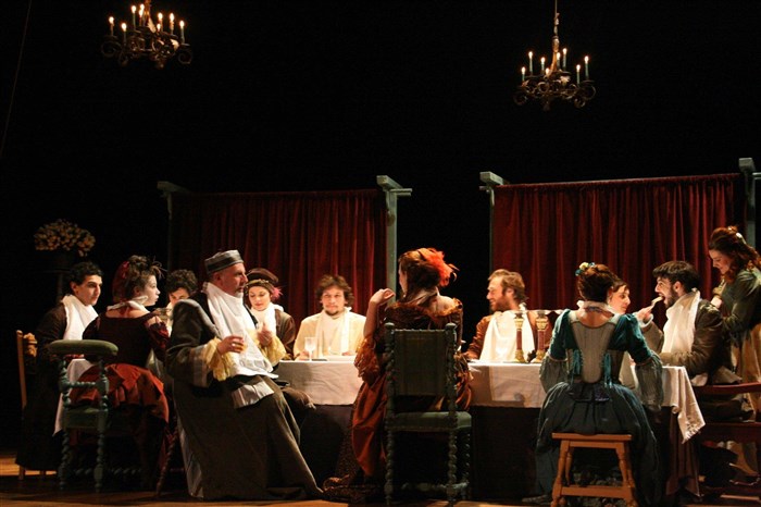 Hervé Van der Meulen, metteur en scène, comédien et co-directeur du studio Théâtre d'Asnières, dirige avec maestria une troupe de quinze jeunes comédiens qui jouent, chantent, et dansent une dernière soirée de carnaval très tonique.