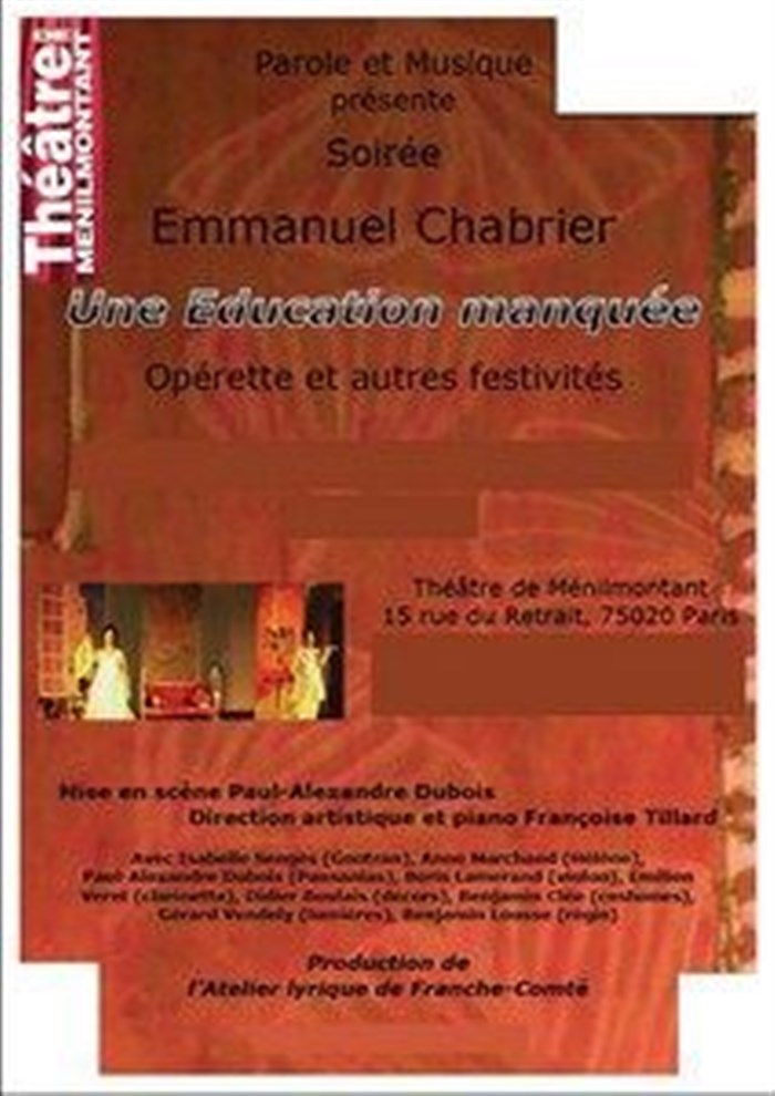 L’événement Une Education manquée, soirée Chabrier de type Musique classique, organisé ici :
