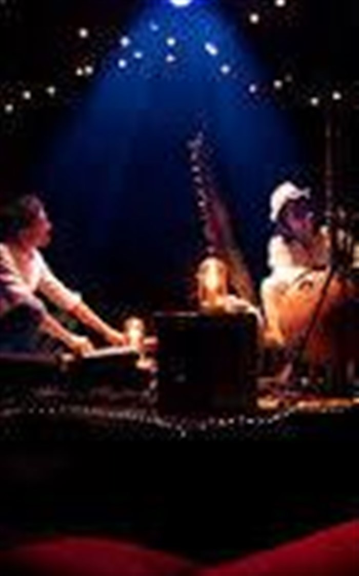 Dans un crescendo rythmique qui emporte le public, les deux musiciens font résonner les sons et les voix du village. La scénographie minimaliste, reprenant des motifs tribaux accentue la sensation d'immersion. De part et d'autre du plateau, des masques et sculptures dotés de capteurs offrent un espace d'exploration et de création sonore improvisée.
