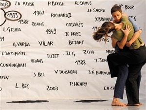 Et pendant ce temps-là Olivia Grandville et Catherine Legrand évoquent d'un geste, d'une phrase, d'un saut, d'un souvenir, les fantômes de Cunningham, Bagouet, Pina Bausch, Béjart ou bien sûr Vilar.