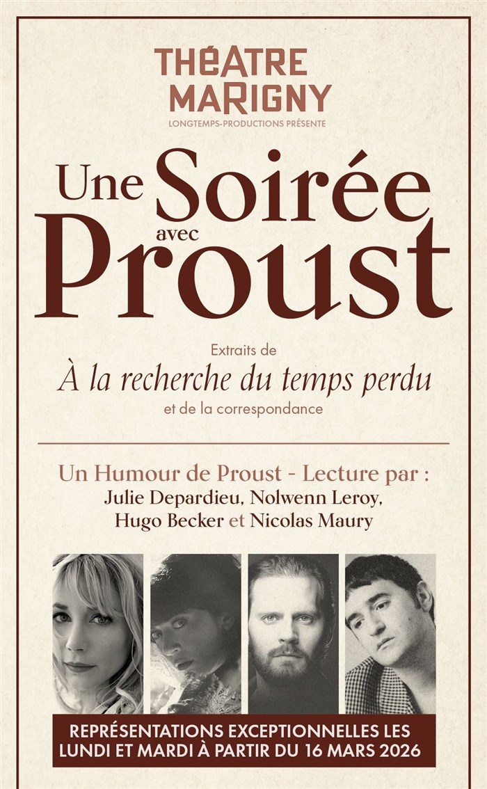 Retrouvez les comédiens Julie Depardieu, Nicolas Maury Hugo Becker et Thibault de Montalembert pour une lecture de la correspondance et des passages les plus emblématiques de Recherche du temps perdu.