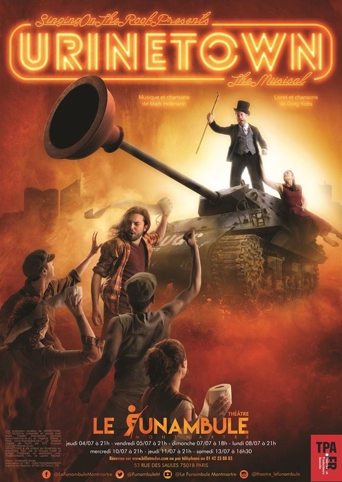Urinetown est une comédie musicale incroyable avec des comédiens et musiciens talentueux. J'ai beaucoup aimé la mise en scène, le rythme et l'humour. On passe un excellent moment ! Courez y :)