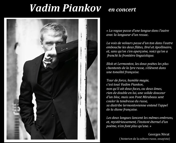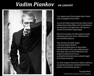 Voix de velours, humble magie, Vadim Piankov passe du Russe au Français avec une solide douceur d'un bloc, écumant les plus belles pages de la poésie.
