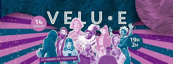 Velu.e c'est à la fois un cabaret viscéral changeforme et détonnant, un rendez-vous pour tou.te.s, une plateforme d'échange pour le coeur qui renoue avec l'essence même du cabaret Parisien, irrévérencieux et jubilatoire.