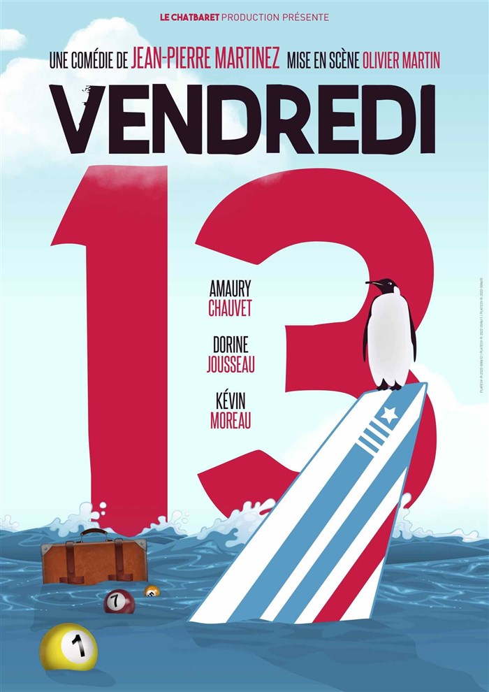 Mais Patrick arrive seul, effondré. Il vient d'apprendre que l'avion qui ramenait sa femme de Paris s'est crashé en mer. Suspendu aux nouvelles avec le veuf potentiel pour savoir si sa femme fait partie ou non des survivants, le couple apprend qu'il vient de gagner au super tirage du loto de ce vendredi 13. Le mot d'ordre est dès lors "cache ta joie"... De nombreux rebondissements sont à prévoir au cours de cette soirée qui s'annonce pleine de turbulences ! Une comédie au succès planétaire, jouée dans plus d'une dizaine de langues. Avec Amaury Chauvet, Dorine Jousseau et Kévin Moreau