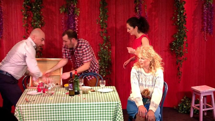 Deux amis d'enfance se retrouvent pour dîner avec leurs compagnes respectives.