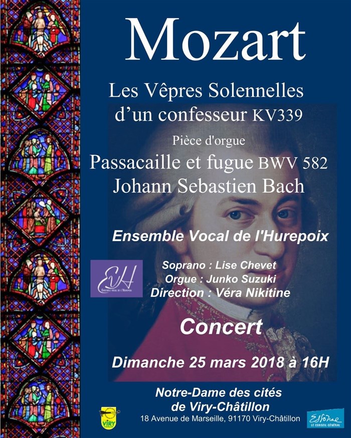 Les Vêpres Solennelles d'un confesseur de Mozart seront chantés par quatre solistes : Lise Chevet, Orelle Pralus, Lancelot Lamotte et Antoine Bretonnière ; accompagnés par une cinquantaine de choristes amateurs et la pianiste Valérie Ver, le tout dirigé par Véra Nikitine.