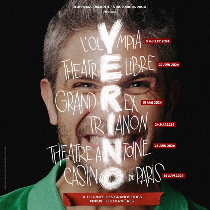 Alors rendez-vous à l'Olympia (05/07), au Théâtre Libre (22/06), au Grand Rex (31/05), au Trianon (24/05), au Théâtre Antoine (28/06) et au Casino de Paris (14/06).