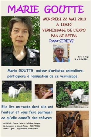 Marie Goutte, comédienne, qui aime beaucoup les animaux, a toujours grand plaisir à venir lire des textes lors de cette exposition.