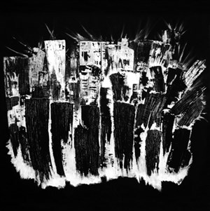 En fond de toile, la ville, en noir et blanc se mue. L'artiste - peintre fait danser ces tours interminables : immeubles, cités, déclinés de plusieurs façons et au gré de différents supports et instruments (croquis, dessins, peinture à l'encre de chine).