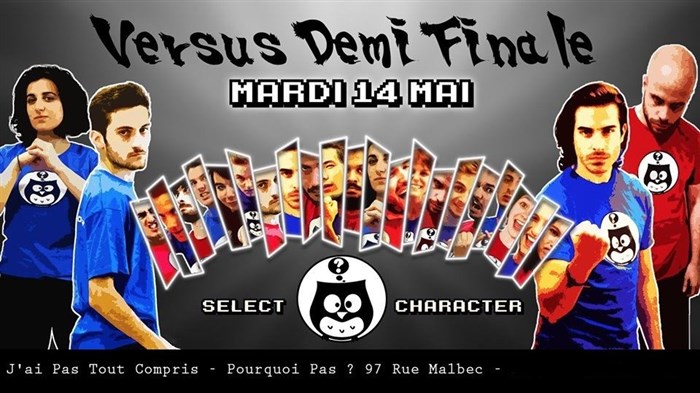 Le Versus est le format de match d'improvisation interne de la troupe des J'ai Pas Tout Compris. Cette année, pour la 5ème saison, 21 hiboux vont s'affronter dans un tournoi de 7 poules pour décrocher le titre de Meilleur-e Joueur-euse 2019 des J'ai Pas Tout Compris. Même principe que le match d'improvisation classique, sauf qu'ici : ils joueront en un contre un ! Un défi audacieux qu'ils relèveront pour vous une fois par mois.
