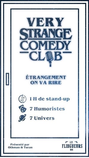 Very Strange Comedy Club est un endroit de découvertes, de rencontres et d'échanges artistiques ! Tous les vendredis aux Flingueurs, très étrangement on va rire !...