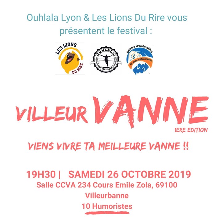 Villeurbannais, mais aussi amis lyonnais, et autres villes, venez découvrir ce festival et sa première édition qui vous prévoit des vannes à rugir de rires...