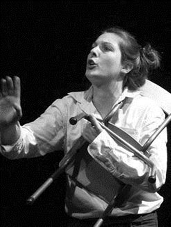 Une femme tient une petite chaise pour enfant dans ses bras. Elle nous parle, nous invective, nous supplie. C'est un puzzle de questions qui petit à petit deviennent le récit d'une vie.