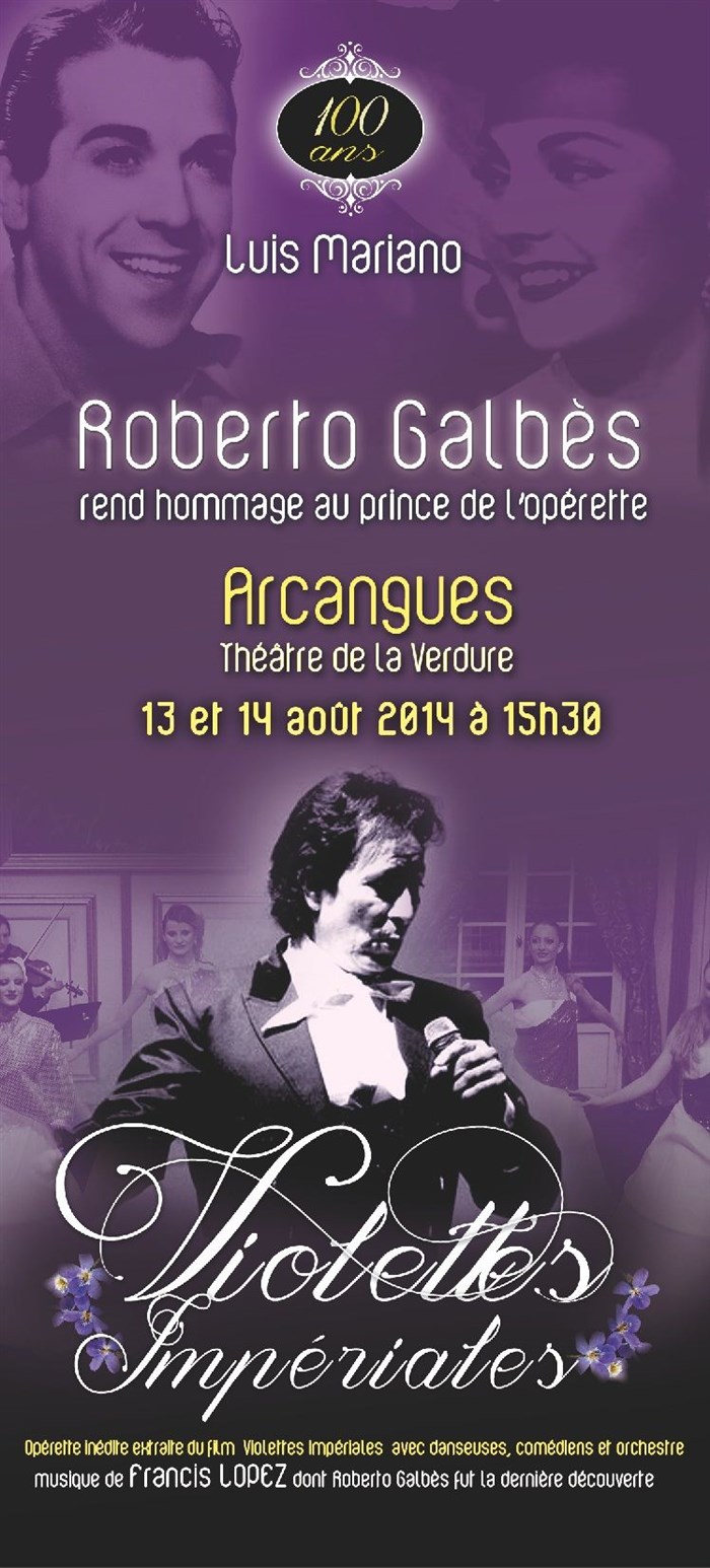 A l'occasion du centenaire qui sera brillamment fêté tout au long de l'année 2014, Roberto Galbés, dernière découverte de Francis Lopez qui, après avoir été choisi par Patchi Lacan à Arcangues (1), pour les 40 ans de la disparition Luis, rend de nouveau un fervent hommage au Prince de l'Opérette dans " Violettes Impériales ".