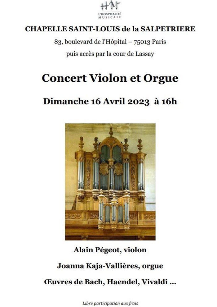 L’événement Violon et orgue à la Salpêtrière de type Musique classique, organisé ici :