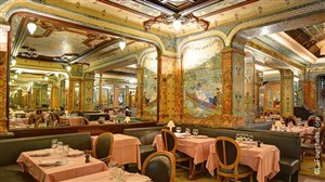 La brasserie Mollard (boisson au choix) au superbe décor art nouveau : histoire de la naissance du chemin de fer à l'initiative des frères Pereire.