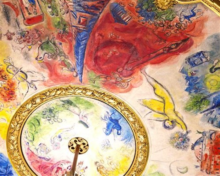 Parmi les oeuvres emblématiques de Chagall qui ont été incluses dans cette donation figurent les esquisse pour le plafond de l'Opéra Garnier ainsi que les dessins préparatoires pour les décors de scène et le rideau du chef d'oeuvre de Stravinsky : "L'Oiseau de feu".