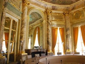 Visite d'un édifice grandiose; l'escalier monumental, la salle à manger, la salle de séance de la section des Finaces, souvenirs du siècle des Lumière.
