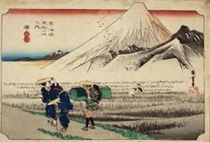 Utagawa Hiroshige, très réputé au Japon est l'un des derniers maîtres dans la tradition de l'Ukiyo-e; qui signifie images du monde flottant, style d'estampes très coloré propre à l'époque d'Edo.