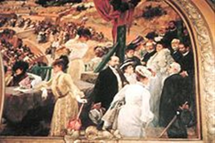 Le théâtre d'Orange d'Albert Maignan, mettant en scène les dirigeants du réseau fiers de leur mécénat et des "people" de l'époque : Sarah Bernhardt, Réjane et Edmond Rostand...