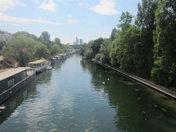 L'itinéraire emprunte les rues arborées et les pontons des deux bras de la Seine.