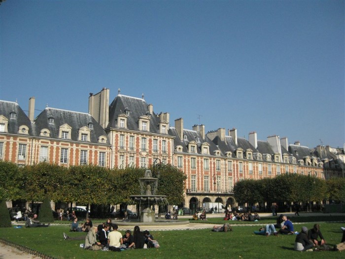 Ici un hôtel médiéval-Renaissance, par là des hôtels particuliers du XVII°s. -nouvelle conception de la demeure aristocratique urbaine- , puis la Place des Vosges tant désirée par Henri IV, un morceau (le plus important visible) de l'enceinte Philippe-Auguste, et aussi... le pletzl (rue des Rosiers) et le souvenir des excellents (et très longs...) sermons de Bourdaloue à l'église Saint-Paul-Saint-Louis...