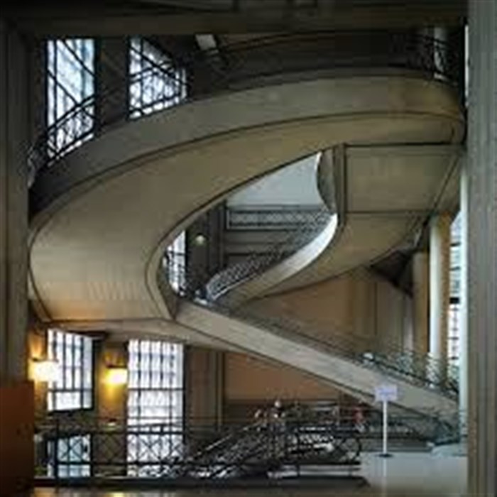 Une superbe salle hypostyle dont les colonnes élancées expriment les forces qui s'exercent sur l'édifice. Un escaler et un amphithéâtre grandioses dont l'ampleur est permise par l'utilisation du béton armée. Histoire et fonction du Conseil Economique, Social et Environnemental.